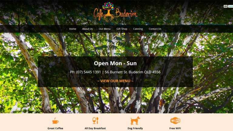This Buderim Cafe Web Design was part of a rebrand we did for this client. The cafe is situated down a side alley on the main street and the alfresco dining area is shaded by a large tree which the owners say is the main attraction because of the shade and tranquillity. The web design uses a photo of the tree taken by our designer and really conveys the feeling of sitting in the shade enjoying your coffee. The web design also has a customisable menu and opening hours that are easily edited by the staff as necessary. A Trip Advisor ratings widget is also utilised so that new visitors can see all of the positive reviews.